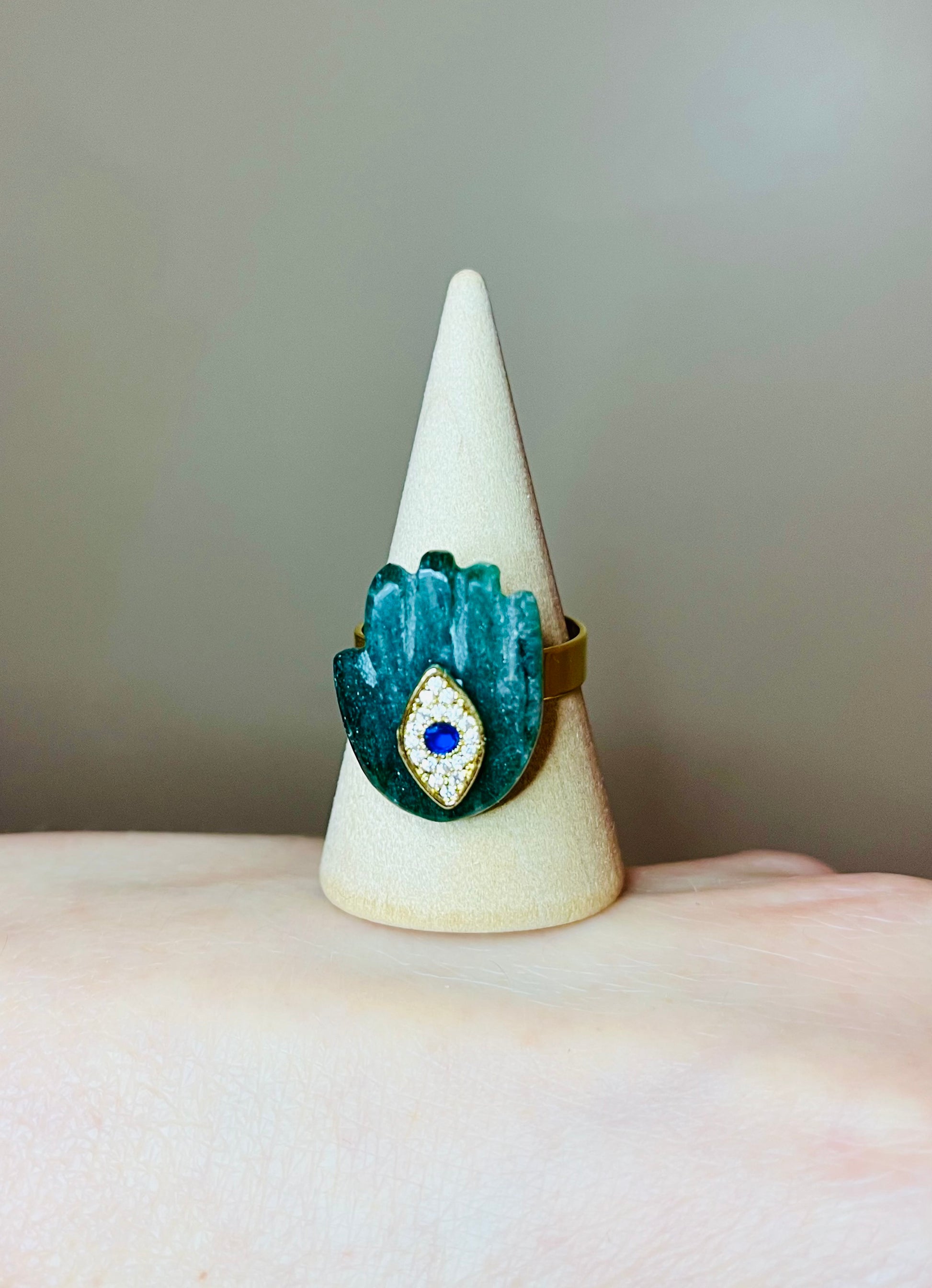 Bague main en Aventurine, sertie d’oxyde de zirconium.