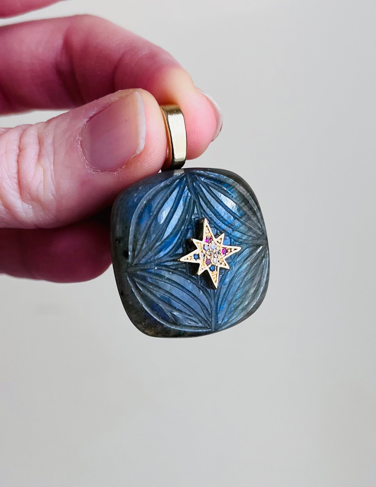 Pendentif Labradorite gravée.