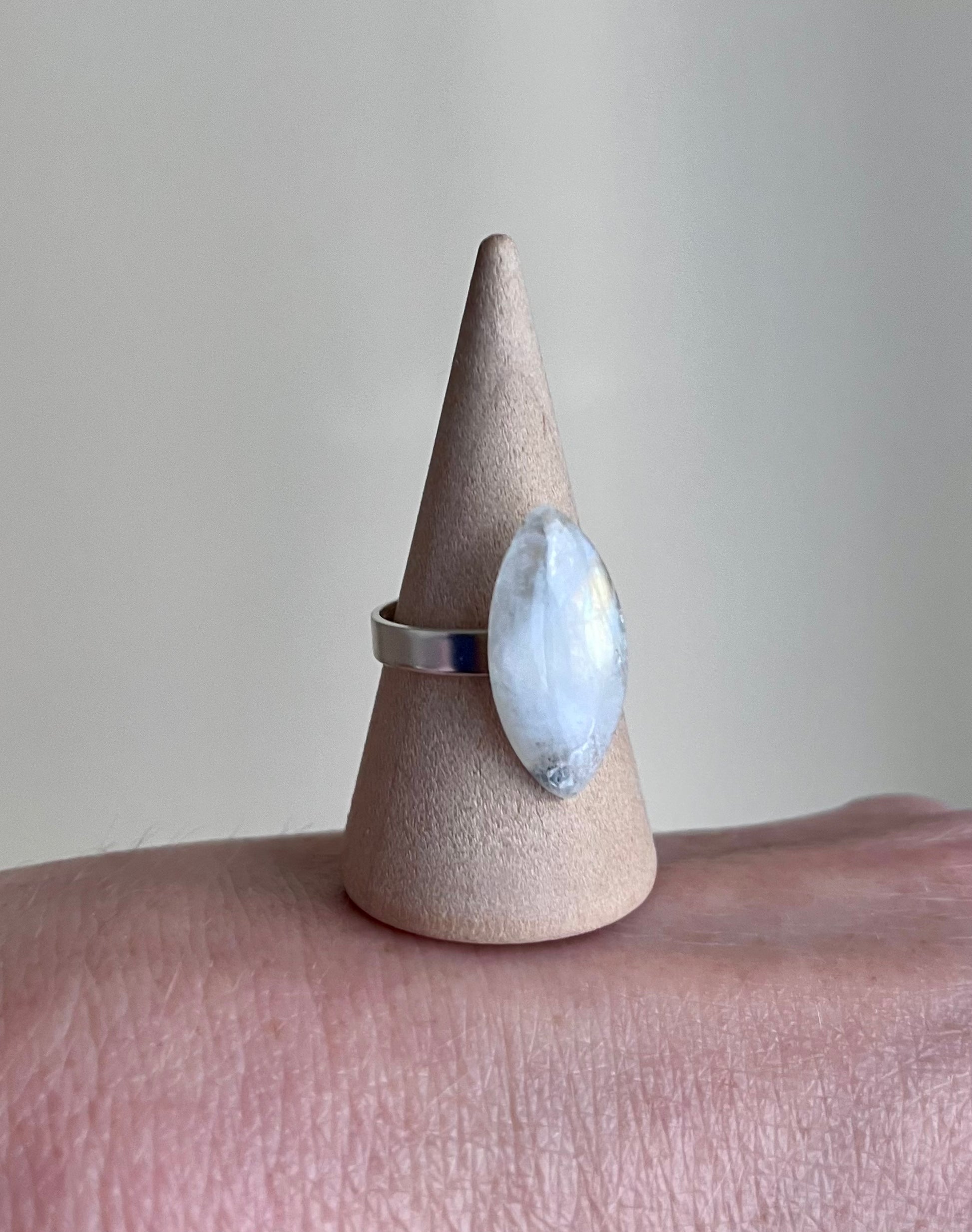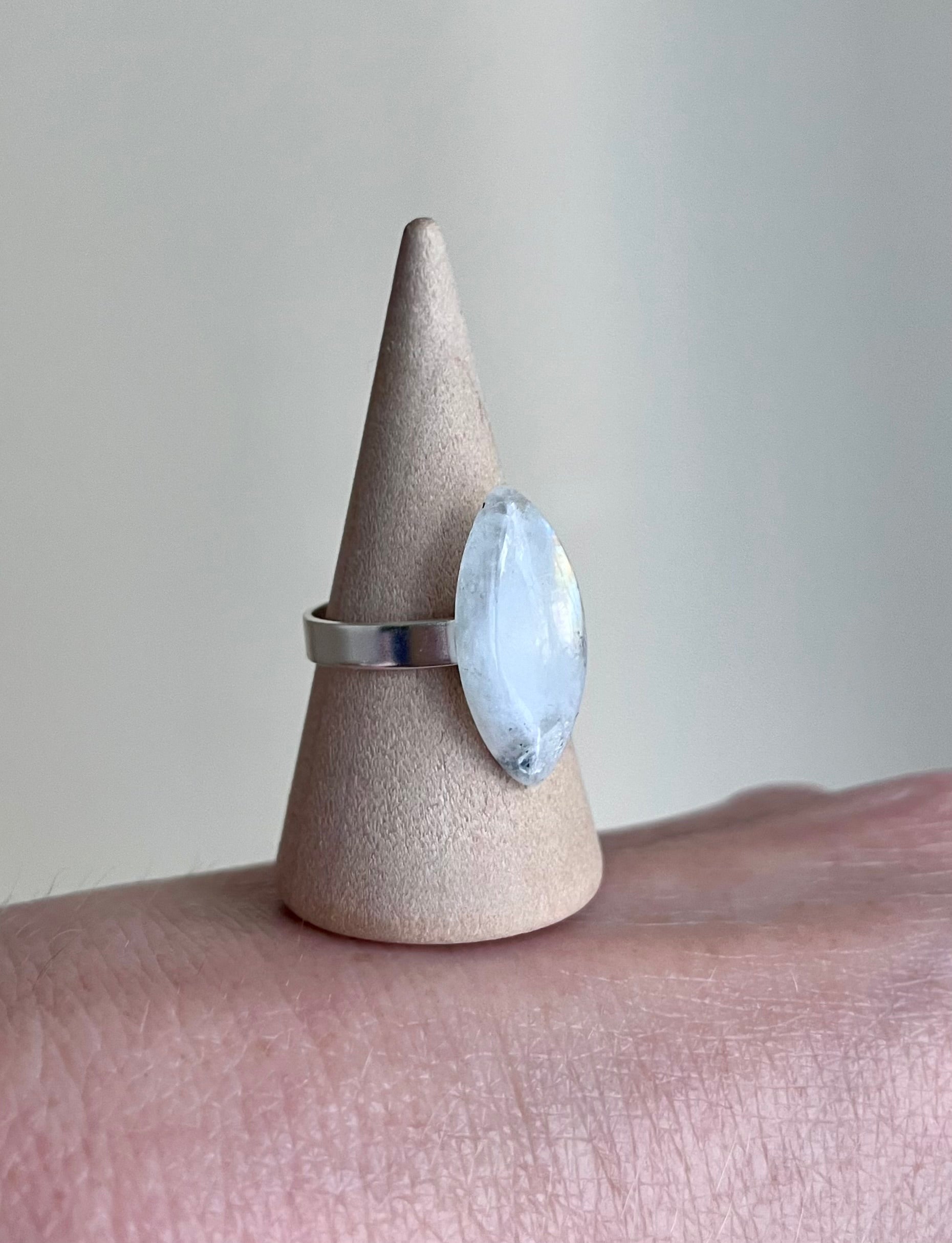 Bague jonc en argent 925, Pierre de Lune marquise.