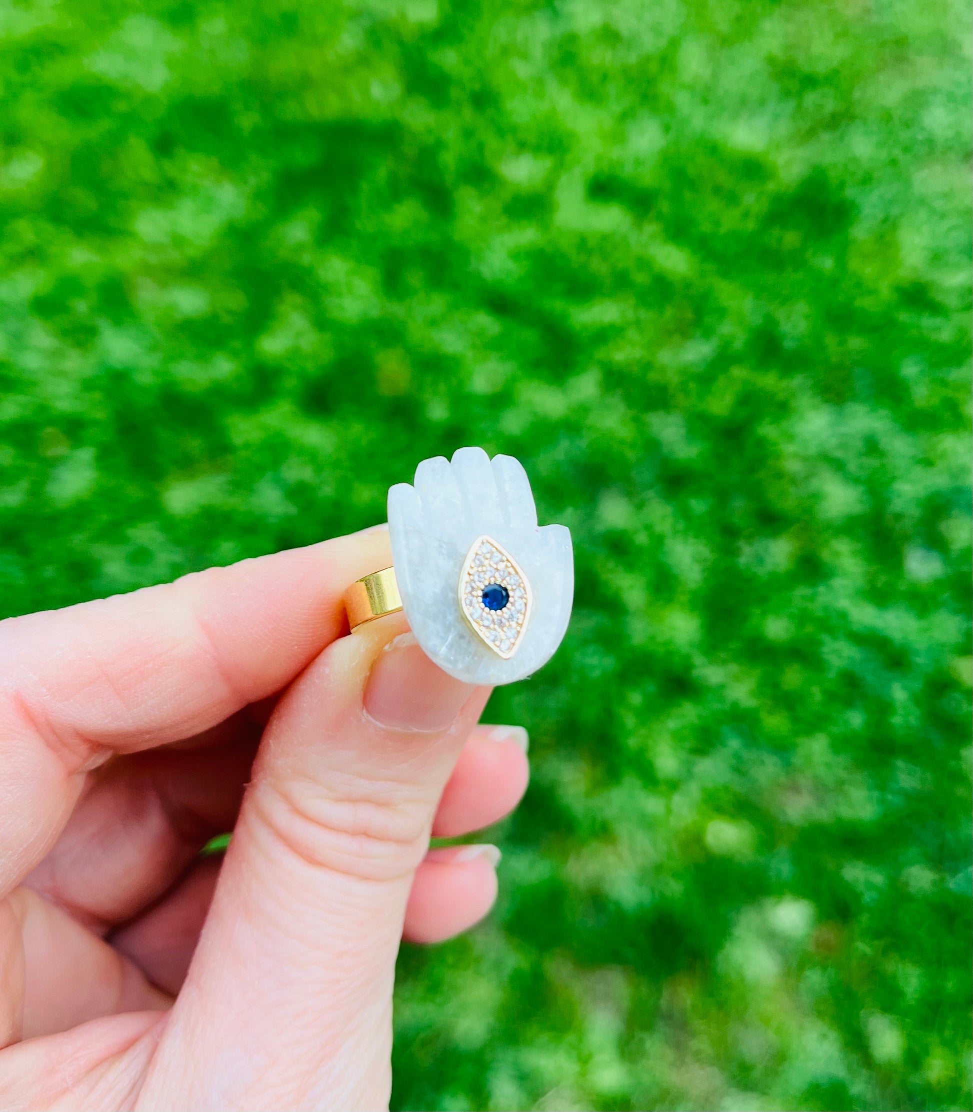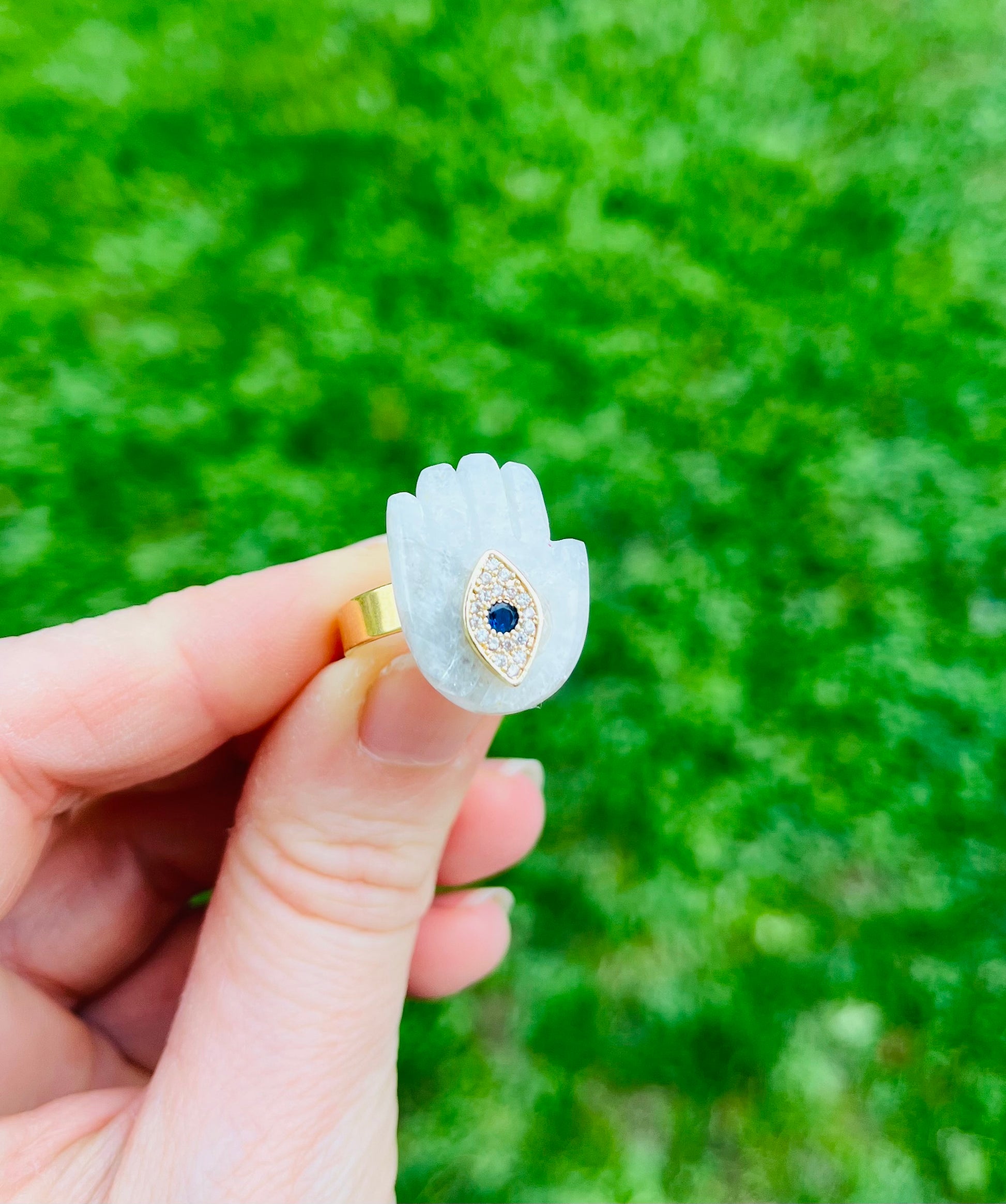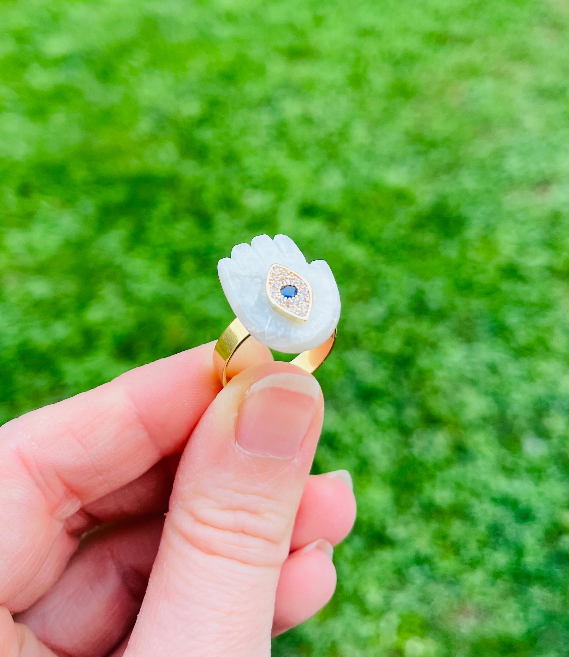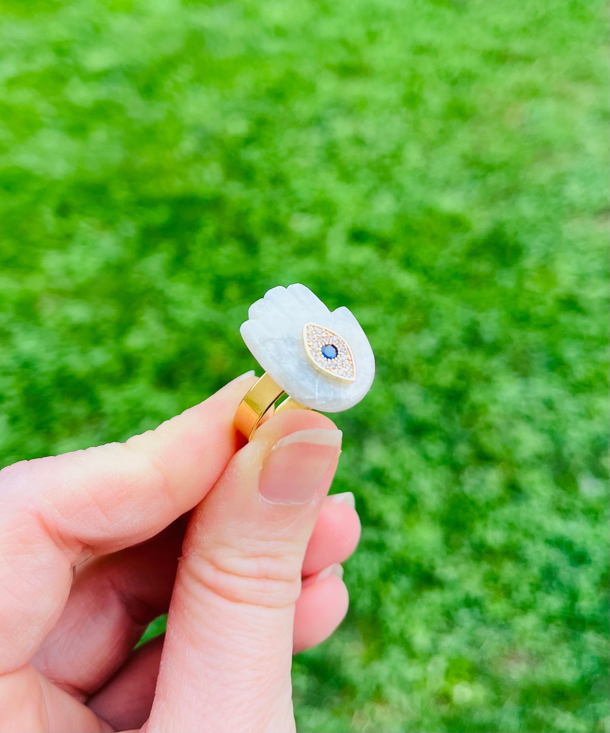 Bague main en Pierre de Lune sertie d’oxydes de zirconium.