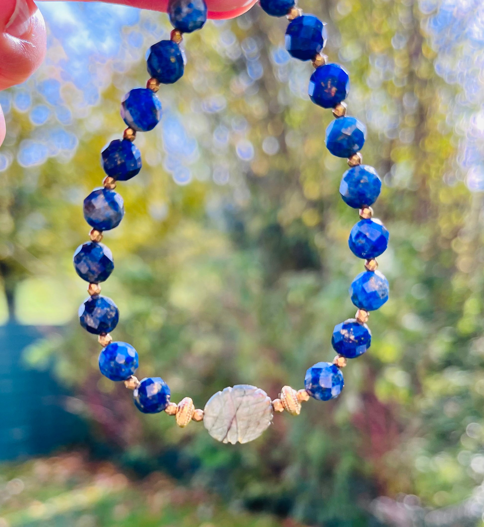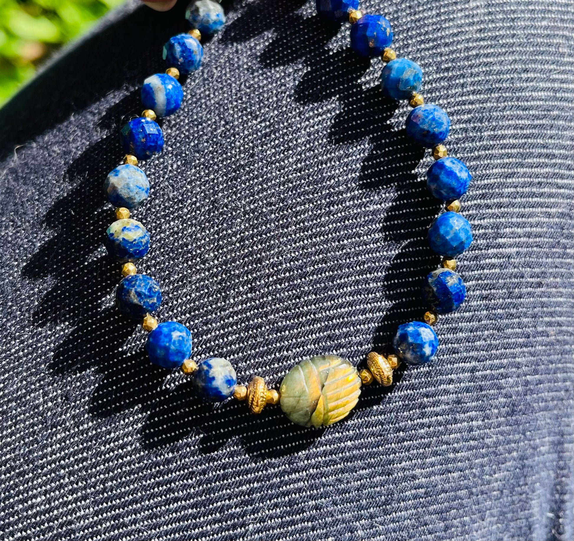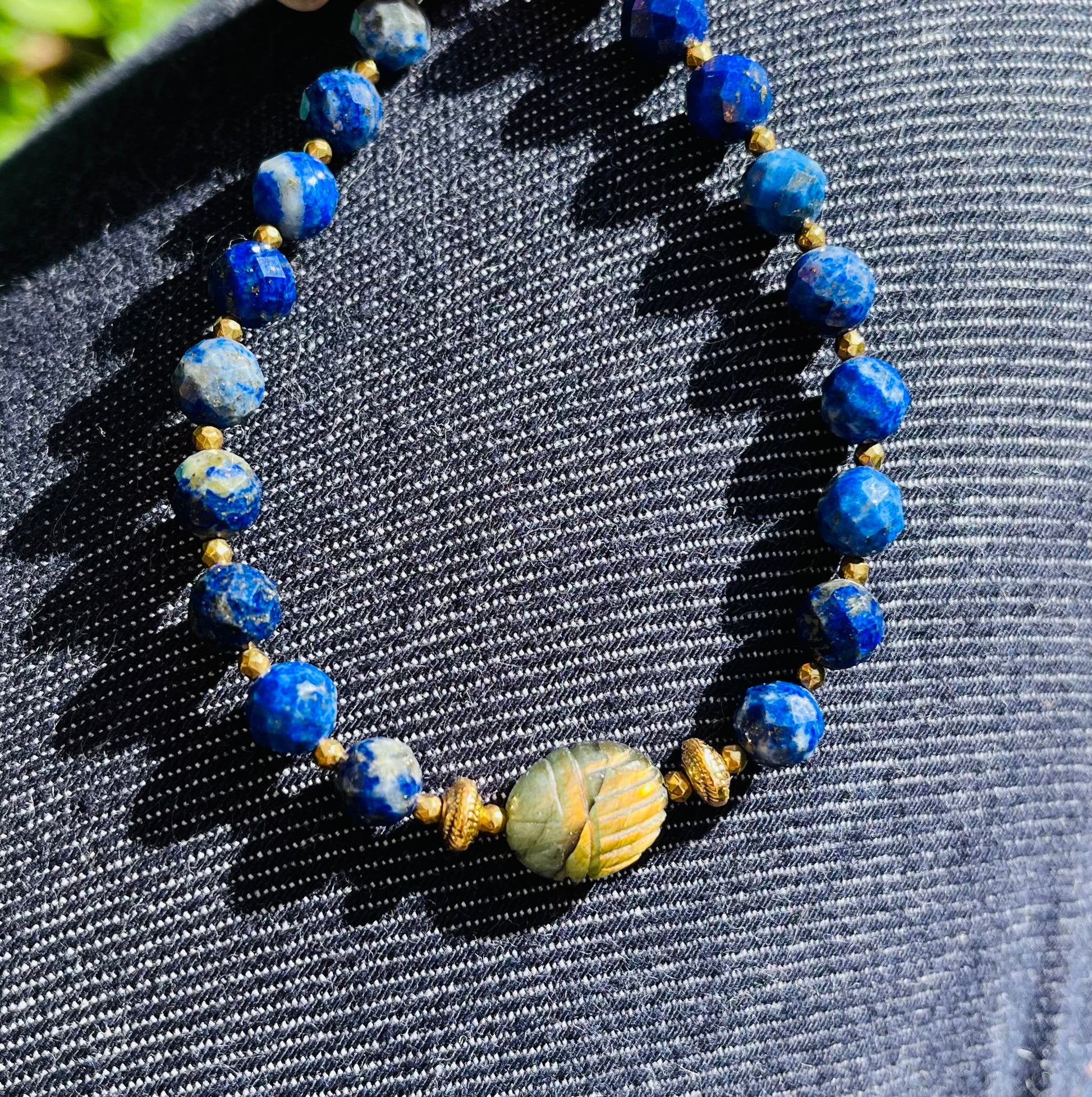 Bracelet amulette scarabée Labradorite et Lapis-lazuli