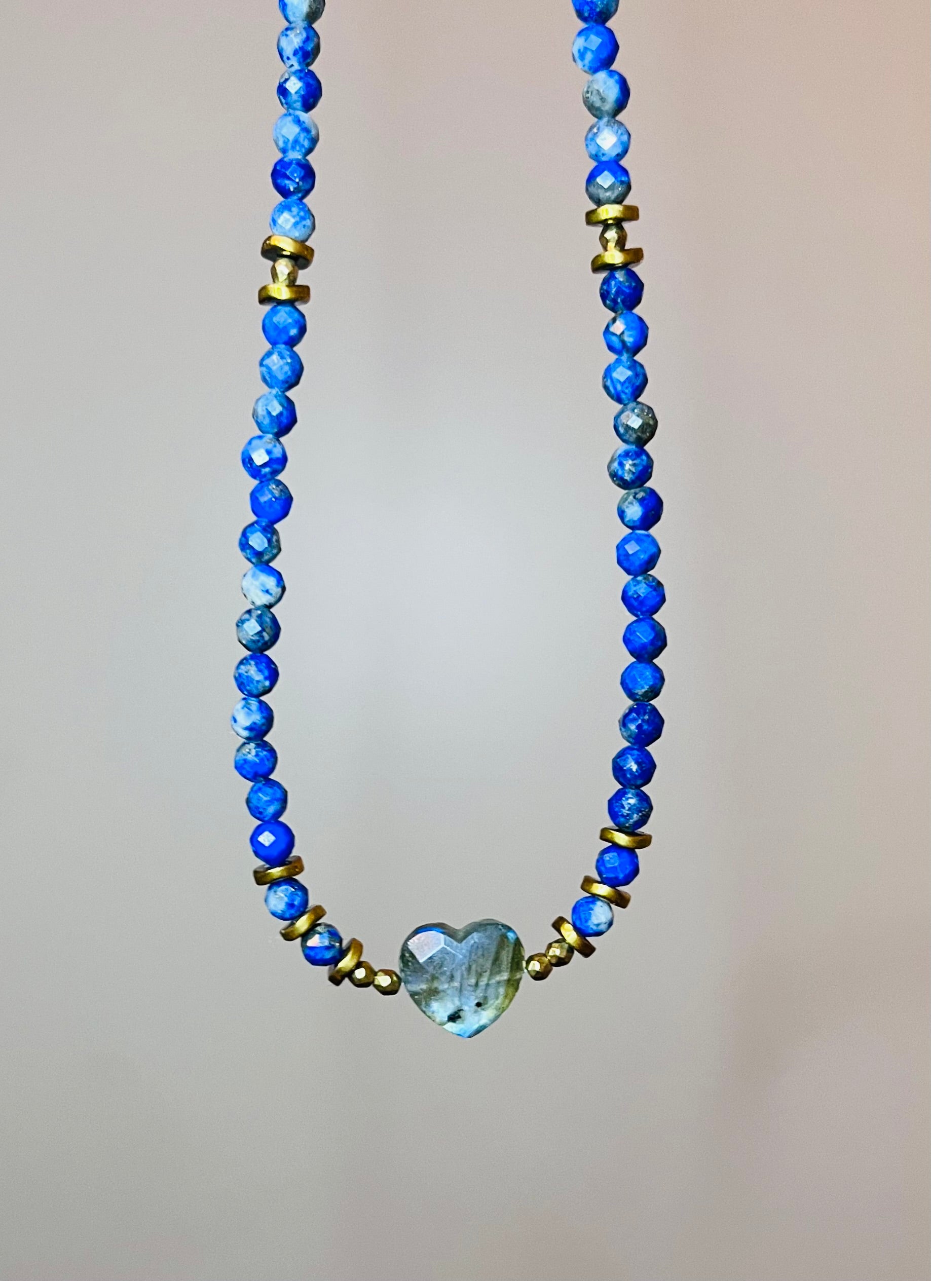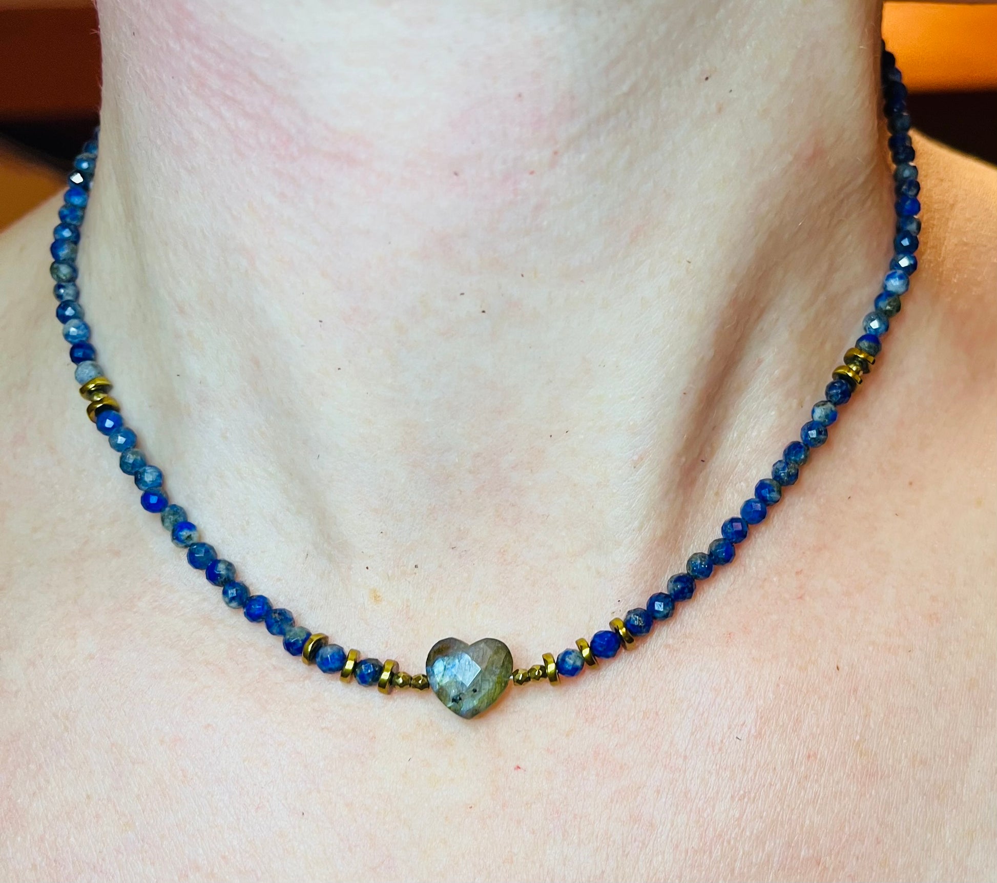 Collier ras du cou, petites perles facettées de Lapis-lazuli.