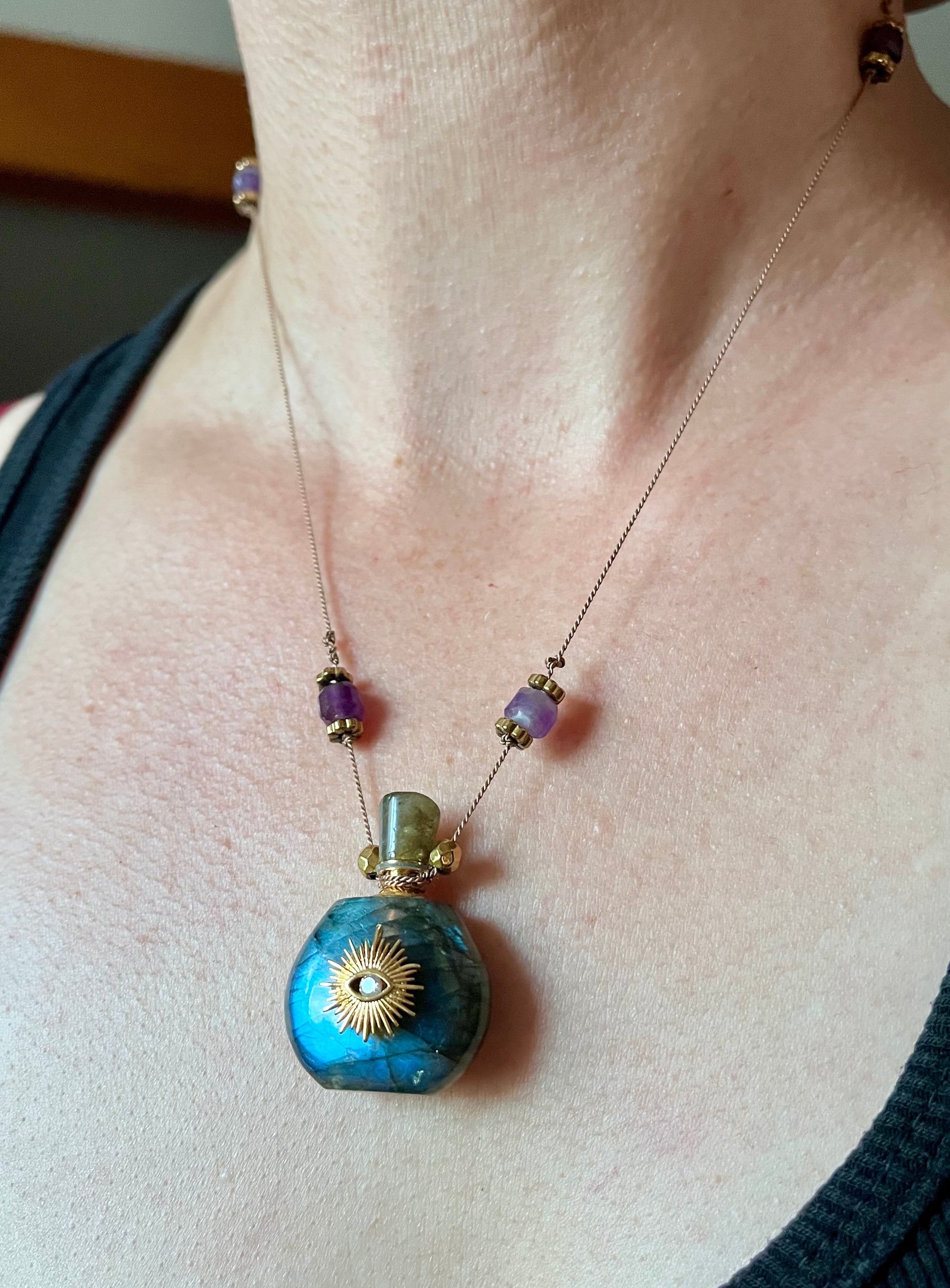 La labradorite est souvent associée à la lumière cachée, en raison de ses reflets irisés (bleus, verts, dorés). Elle symbolise la transformation, la protection et la découverte de soi.